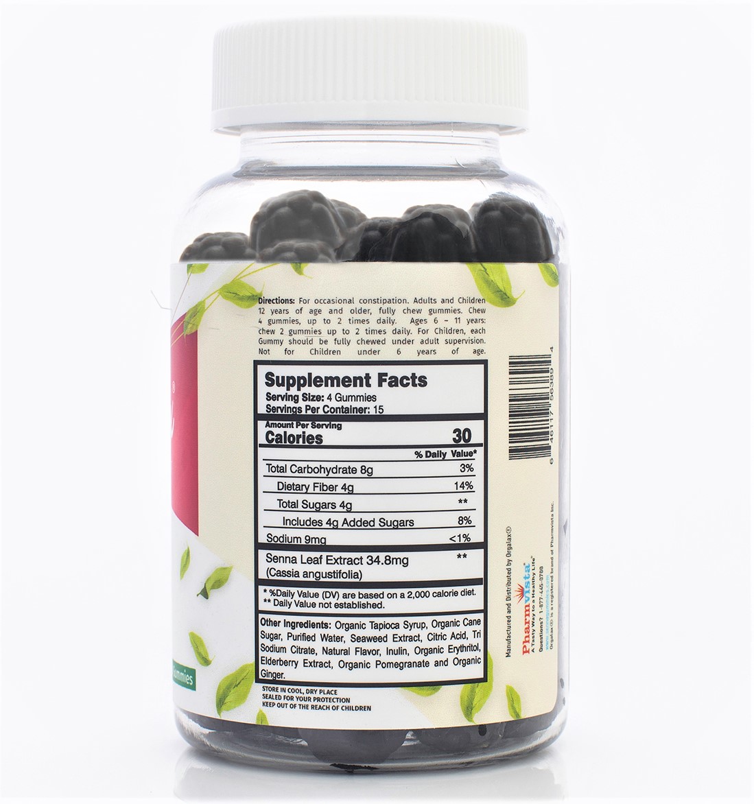 - 60 count bottle of Orgalax Gummy with Senna in an exciting mixed fruit flavor - Gluten Free, Gelatin Free, Made in USA - 60ct